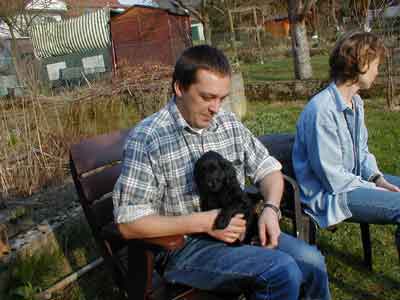 BILDER VOM TAG 42, WELPENBESUCH VON ASTRID, WALTER UND CAROLIN, die uns auch beim Stellen der Welpen für die Einzelbilder halfen!