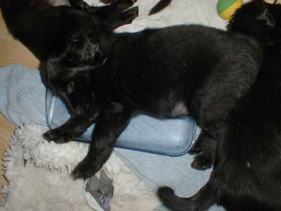 Hier schläft der weisse Ruede in der viel zu kleinen Wasserschale...wenns bequem ist...:-)