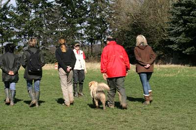 Hier holt mich die Gruppe mit Verleithund ab, um außer