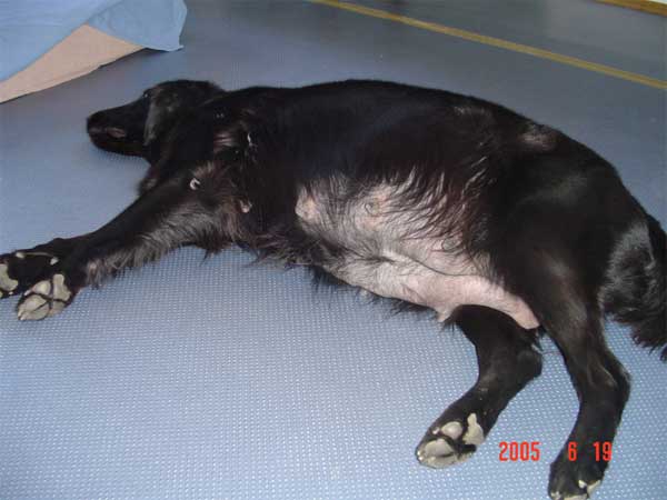 20./21.04.05: Janni wurde von Quills Black Peter Pike "Pikey" gedeckt! Wir erwarten unseren C-Wurf somit um den 22. Juni 2005. Janni kurz vor der erwarteten Geburt am Tag 60 nach Deckung: