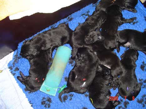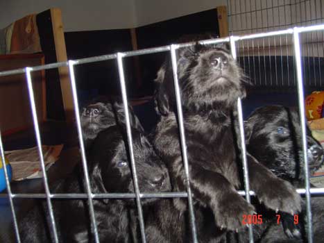 Am 20.06.05 brachte Janni 11 gesunde schwarze Flatwelpen zur Welt! Wir freuen uns!