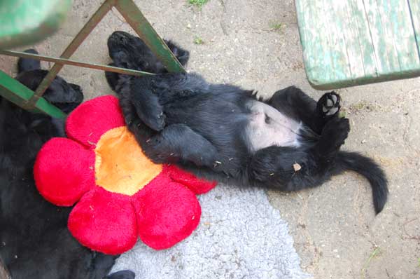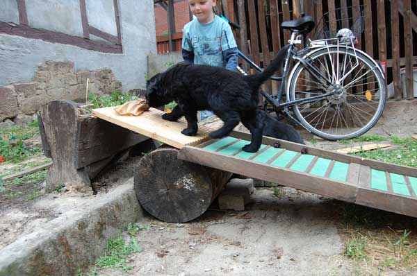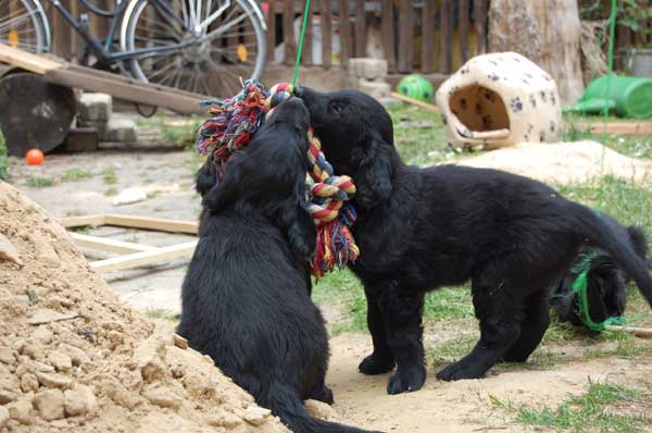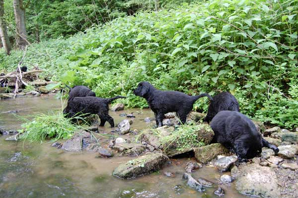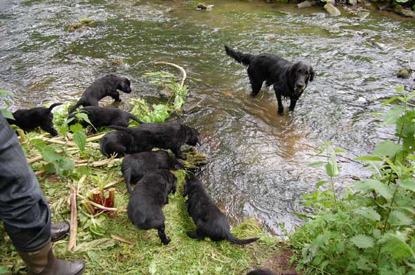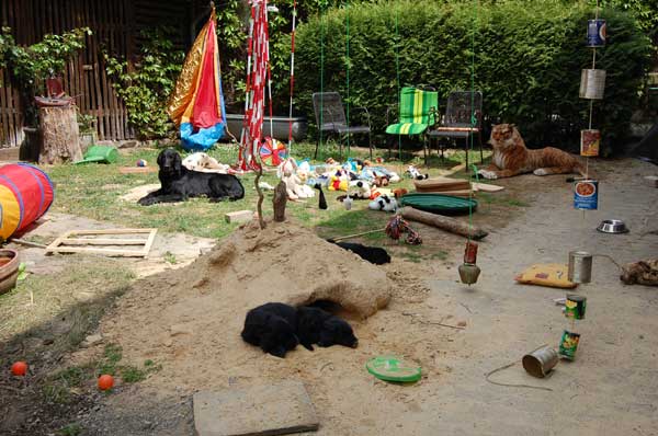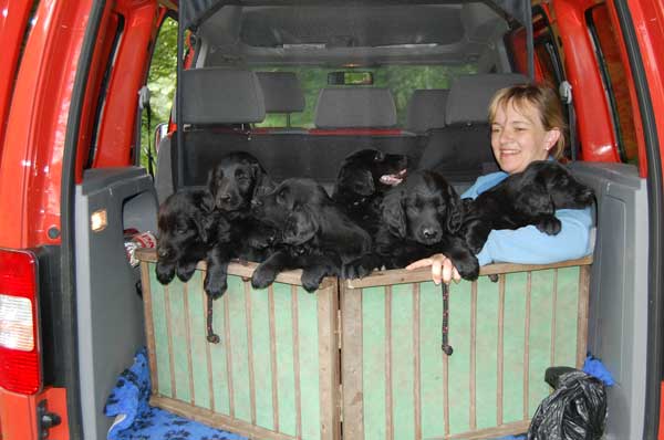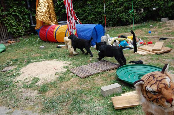 Langsam denkt man an den Abschied von den Kleinen und wir genießen die letzte Woche mit allen Babys. Wieder erhalten wir Besuch und unternehmen Ausflüge. Der Tierarzt kommt zum Impfen und Chippen und der Wurf wird -ohne zuchtausschließende Feststellungen- mit Prädikat "sehr engagierte Züchterin; ausgezeichnet geprägte Welpen und ausgezeichnete Aufzuchtbedingungen"- von Frau Becker-Tiggemann abgenommen.
