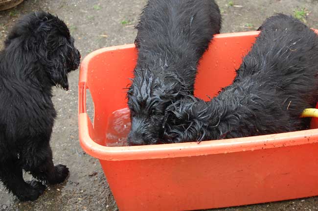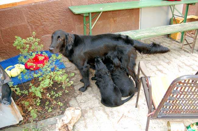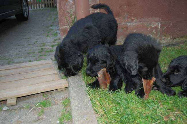 Nun sind schon 6 Welpen ausgezogen und wir verbringen die 9. Woche mit 4 Welpen: Franzi, Seppl, Bailey und Flocke.