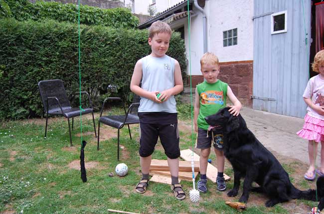 Marcel und Maurice, die sehr oft die Welpen besuchten und auch viel mit Sientje spielten