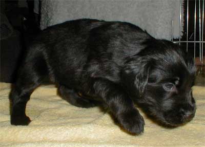 Erstgeborene Hündin, ohne Markierung, mittlerweile 2400g schwer