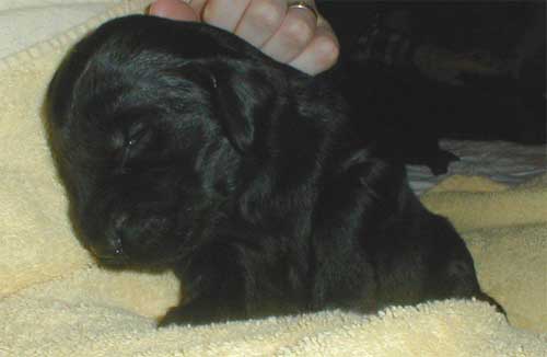 Die erste Hündin, ohne Markierung, mittlerweile 1148g schwer