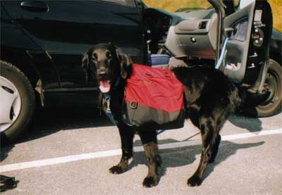 Natürlich hatten wir Janni schon vor dem Urlaub an die Packtaschen mit Wanderungen durch den Taunus gewoehnt-das von ihr getragene Futter wurde sicherheitshalber einzeln eingeschweisst, falls Janni einem der vielen Seen mit Packtasche nicht widerstehen koennte.
