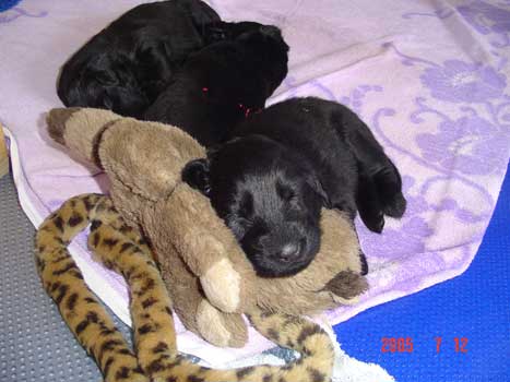 Am 20.06.05 brachte Janni 11 gesunde schwarze Flatwelpen zur Welt! Wir freuen uns!