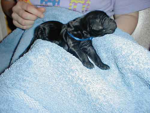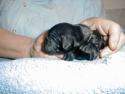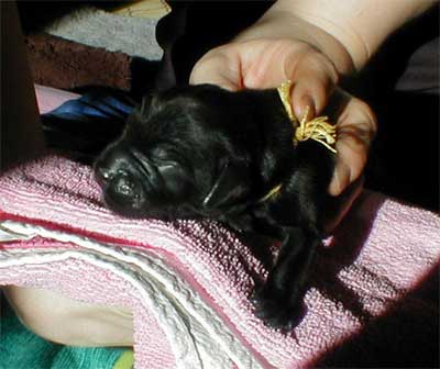 Die erste Hündin, ohne Bändchen, 442g schwer bei Geburt