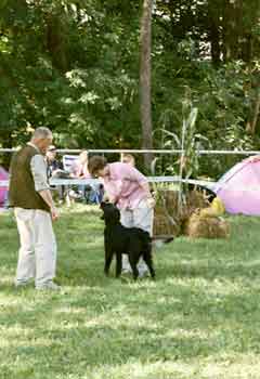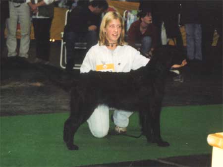Nathalie mit Hobbit und Michi Gruber mit Lennox waren die ersten Flataussteller in der Jüngstenklasse Rüden
