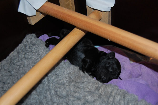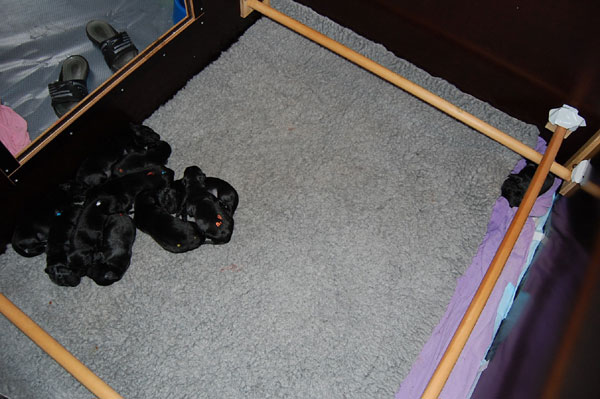 In der Welpenwanne während die Wurfkiste gereinigt wird: