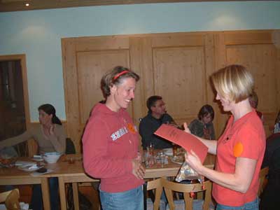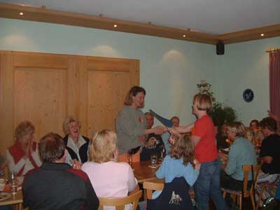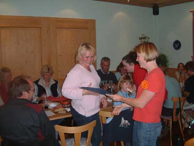 Am späten Nachmittag fielen wir dann alle in einer Kirchberger Gaststätte "Jausenstation" ein, wo wir gemeinsam zu Abend aßen. Währenddessen hielt Lena einen sehr informativen Vortrag über Klickertraining und es fand die Siegerehrung des Quizes statt, bei dem Simone mit Brady das als 1.Preis ausgesetzte Dummy gewann.